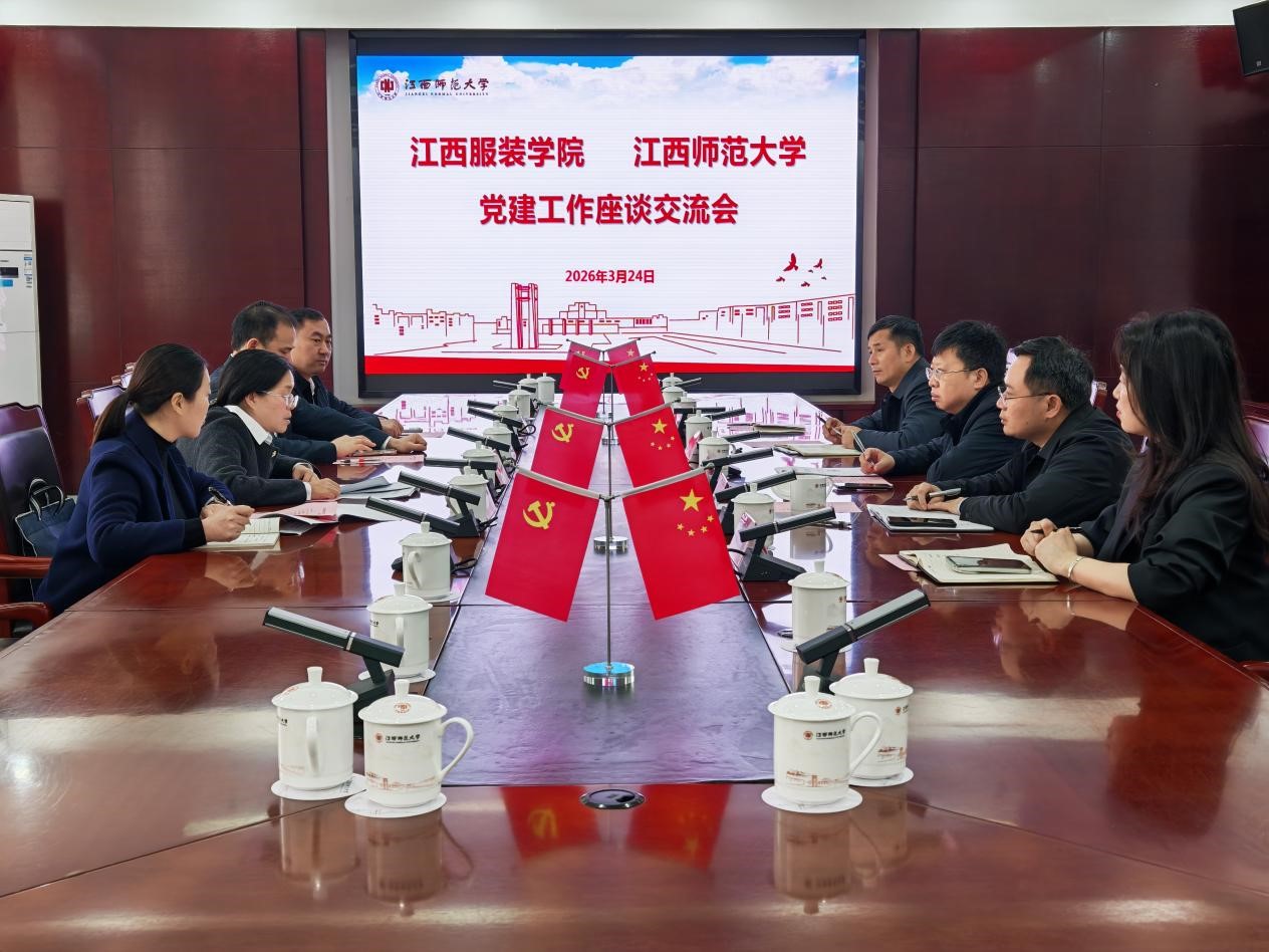 3月25日上午,江西服装学院党委书记林井萍、党委副书记唐新强一行来校调研交流。校党委副书记汪洋,校党委常委、组织部部长郭亮亮,校党委常委、宣传部部长王一喜在知行楼第二会议室会见客人并召开座谈会。汪洋代表学校对林井萍一行的到来表示欢迎,并简要介绍了学校“大先生”党建品牌建设、学科专业和人才培养等方面情况。他表示,希望双方以此次交流为契机,扎实推动党建结对共建各项重点工作,在党建思政、校园安全、学科建设...