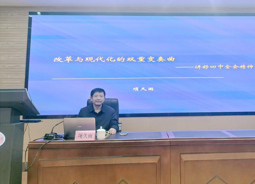 为深入学习贯彻党的二十届四中全会精神,扎实推进全会会议精神高质量融入思政课教学,11月3日上午,“党的二十届四中全会精神融入高校思政课教学”省级集体备课会在我校举行。武汉大学主流意识形态研究院院长、弘毅特聘教授项久雨应邀作专题报告,并就思政课教师教学展示作点评和指导。来自全省高校近100名思政课教师参加。项久雨以《改革与现代化的双重变奏曲——讲好四中全会精神》为题,从改革战略的历史深蕴、改革与现代化的关系...