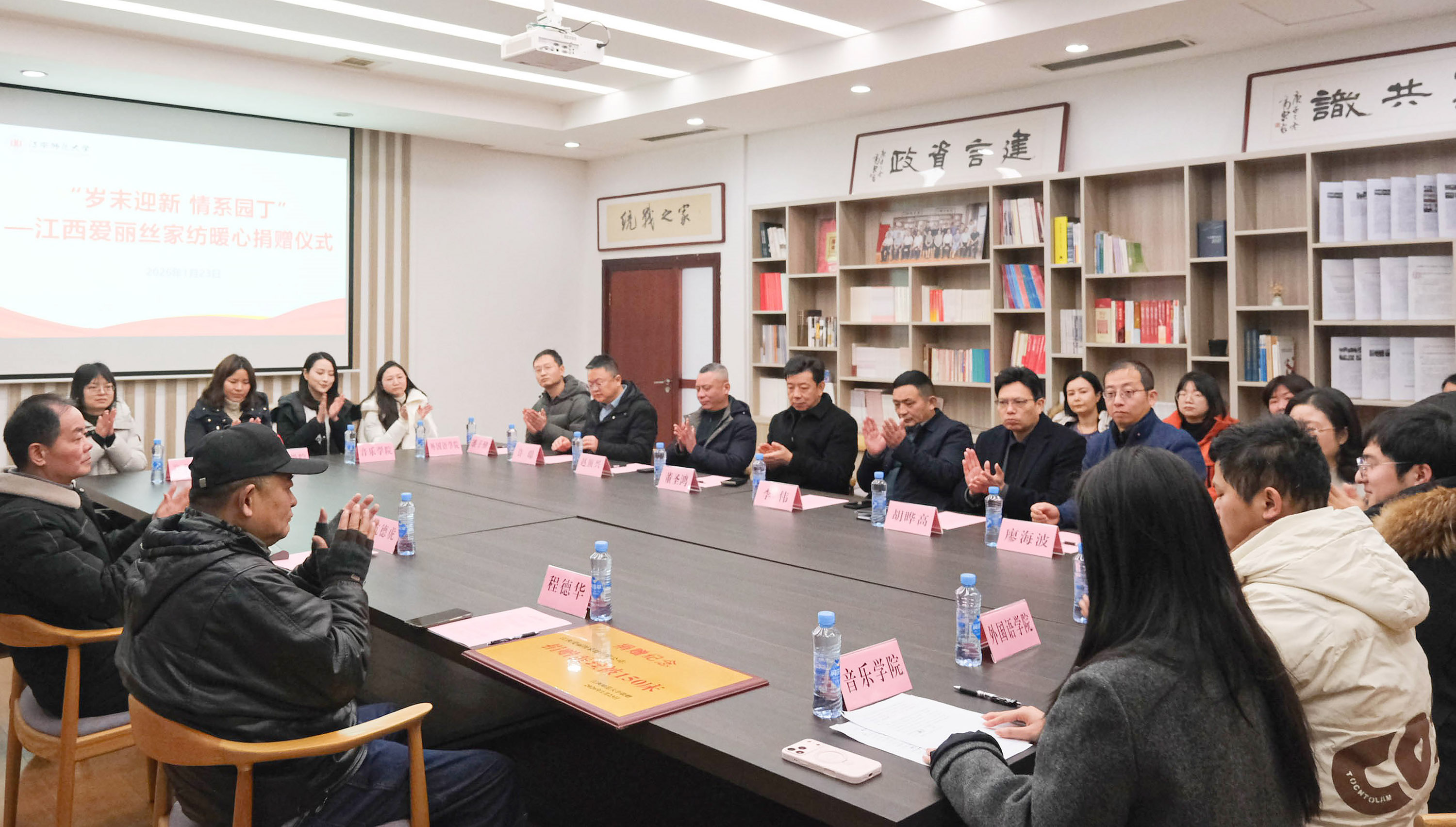 1月23日,江西爱丽丝家纺暖心捐赠我校辅导员仪式在先骕楼统战之家会议室举行。校党委常委、副校长董圣鸿,江西爱丽丝家纺有限公司总经理杭德虎出席,学校相关部门负责人、辅导员代表参与活动。捐赠仪式上,董圣鸿代表学校对江西爱丽丝家纺的善举表示感谢,高度肯定了企业积极履行社会责任的情怀与担当,并介绍了学校发展情况,以及在辅导员队伍建设方面的暖心举措。杭德虎介绍了企业发展情况及捐赠初衷。辅导员代表作了发言,感谢学...