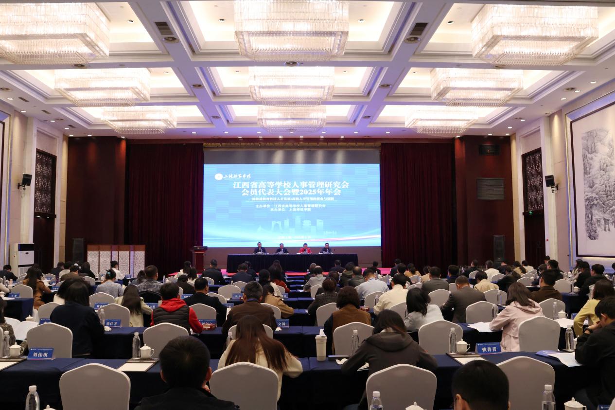 近日,江西省高等学校人事管理研究会会员代表大会暨2025年年会在上饶师范学院召开。省人社厅副厅长叶志忠,我校党委常委、副校长、省高等学校人事管理研究会理事长姚弋霞出席,省人社厅相关处室、南昌大学、江西师范大学、江西财经大学等全省70所高校人事部门共140余位会员代表参加。开幕式上,叶志忠代表省人社厅致辞,姚弋霞代表省高等学校人事管理研究会理事会作工作报告。会议表彰了一批先进集体、先进个人和优秀科研成果。我...