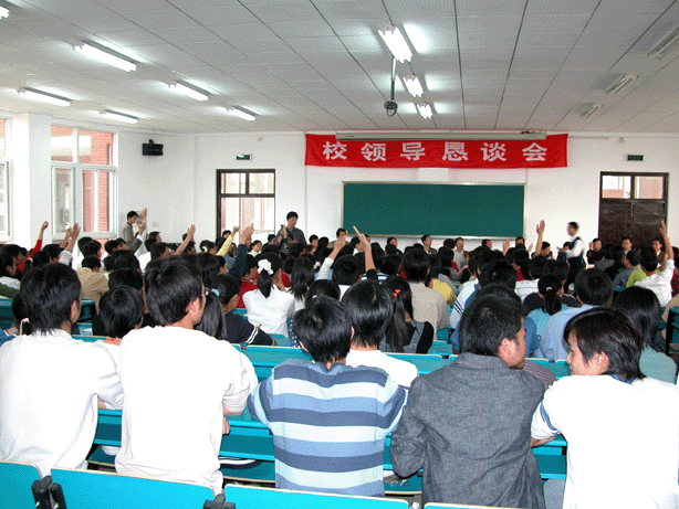 10月29日下午,在江西师范大学瑶湖校区举行了校领导恳谈会,会议由校党委书记、校长游海主持,来参加恳谈会的大多是各院系的2003级新生,都是有备而来,故而提出的问题尖锐而具代表性,其中涉及到了新生们在生活、学习中遇到的很多问题。游校长提出学校要以学生培养为中心,将为2003级同学在瑶湖校区提供一流的学习生活环境。陪同游海书记前去参加恳谈会的有学校领导和各有关职能部门负责人。对学生提出的诸如扶贫工作、学生宿舍管理、改善用膳条件、图书馆藏书不足、校医院服务态度差等问题,一一作出回答,并表示将尽可能采取措施,解决这些问题,受到同学们的欢迎。