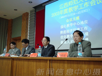 11月24日下午,我校在图书馆报告厅召开以"强化教学中心地位,推进迎评促建工作,优化教学育人环境,提高人才培养质量"为主题的2003年度教学工作会议。校党委书记游海主持会议,傅修延副校长向大会作《进一步强化本科教学工作中心地位,努力开创我校本科教学工作新局面》的报告。校领导蒋凤池、何小平、曹达忠、罗来武出席会议,全校副处以上干部参加会议。