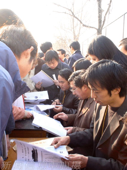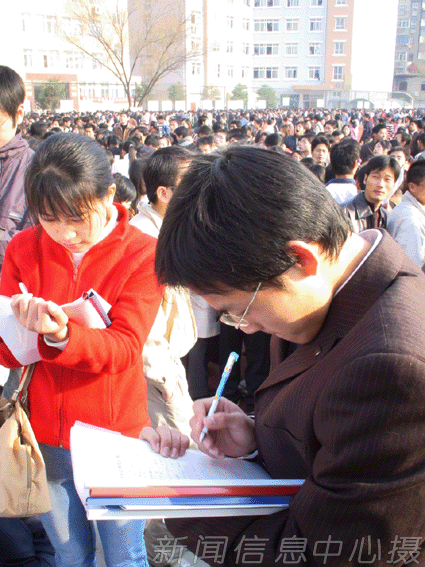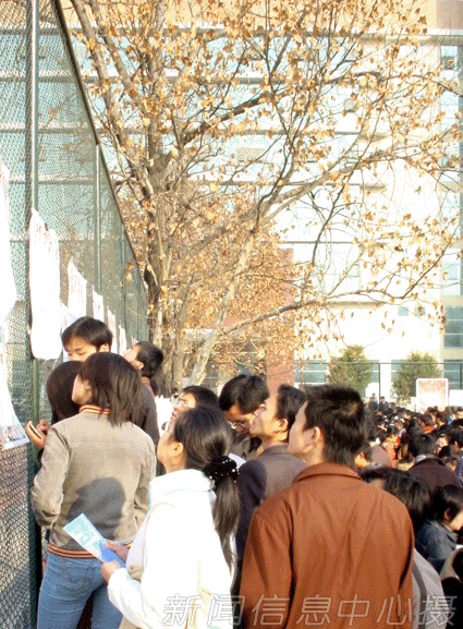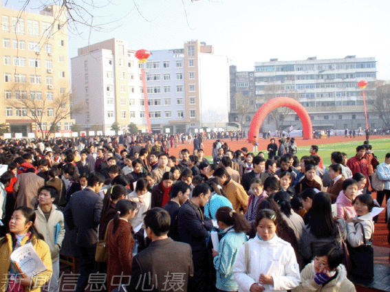 12月28日,在我校田径场举行了2004届毕业生供需见面会。我校今年共有6107名毕业生,其中校本部3936人,师范专业1450人,非师范专业2486人。自11月中旬以来已经有150多家用人单位,400多人员提前进校招聘,需求毕业生2000余名,并签订了部分协议。这次供需见面会取得了预期的效果,共有300多 家用人单位参会,为毕业生提供了5000多个岗位,其中教育行业岗位3500多个,其它行业岗位1500多个。共有12000多名毕业生参加了竞聘,有300多名毕业生与用人单位现场签约,有2000多名毕业生与用人单位达成了就业意向。