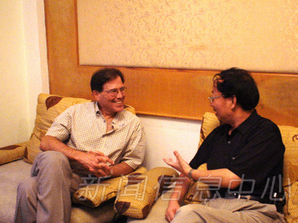 6月26日傍晚,傅修延副校长在园中园接见了来自美国洛杉矶ANAC世界健美操协会主席Howard先生,中国健美操协会技术委员会主任、国家健美操集训队主教练、深圳华康体育用品有限公司总裁王宏先生,宾主进行了亲切友好的谈话。体育学院部分领导和教师陪同接见。
