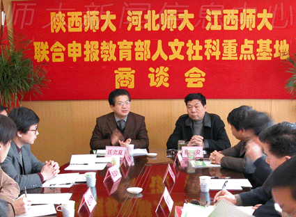 3月4日下午,随着三所高校代表在合作协议书上的签字,标志着我校与陕西师范大学、河北师范大学共同申报国家教育部人文社科重点基地的工作正式启动。三所高校一致同意,本着平等互利、友好合作的原则,通过对三省革命传统教育资源的开发与研究,合力建设中国红色资源开发与教育研究中心。