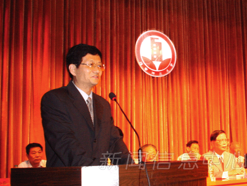 他说,55年前的今天,在城工部的领导下,中正大学进步学生积极投身于国统区反内战、反独裁、反饥饿的学生运动。1948年下半年,中共南昌城工部在中正大学建立了地下党组织。5月26日,中正大学学生载歌载舞将中国人民解放军迎入校园,学校的发展从此进入了崭新的阶段。55年过去,弹指一挥间,今天近百名已逾古稀之年的老同志和老校友重返校园,缅怀青春岁月,畅叙革命情怀,这是一件具有重大历史意义的盛事,为我校正在着力营造的校园文化又添浓墨重彩的一笔。这次盛会必将会给生气蓬勃的师大校园注入强劲的精神动力;温故而知新,继往以开来,爱我师大必先知我师大,知我师大当思兴我师大,今日莘莘学子负有弘扬传统再创辉煌的崇高使命。当前学校正在校区建设、制度建设、文化建设和学科建设等方面迈出坚定步伐,一座生态气息浓郁、人文底蕴深厚、教学与研究功能齐全的现代化开放校园,即将在南昌城东瑶湖之滨建成。这一切,极大的振奋了全校4万多名师生员工的精神,为学校实施"三步走"发展战略--力争用20年时间把江西师范大学建成一所综合性、有特色、高水平、国内知名的教学研究型大学奠定了坚实基础。