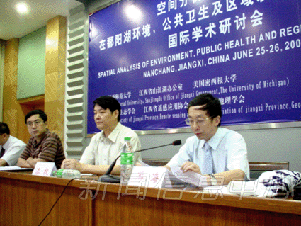 6月25日至26日,"空间分析理论和方法在鄱阳湖环境、公共卫生及区域发展中的应用"国际学术研讨会在我校举行,这次会议由我校、江西省山江湖委员会办公室、美国密西根大学联合举办,江西省遥感应用协会、生态学会、地理学会协办。省委教育工委书记、省教育厅厅长漆权出席研讨会开幕式。