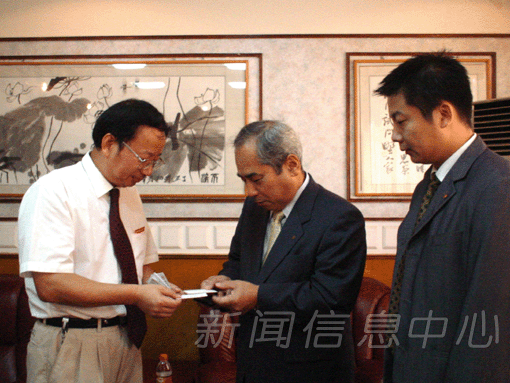 日本冈山商科大学留学生科胡勇彬先生会见时在座。我校国际处李行亮处长参加了会见。