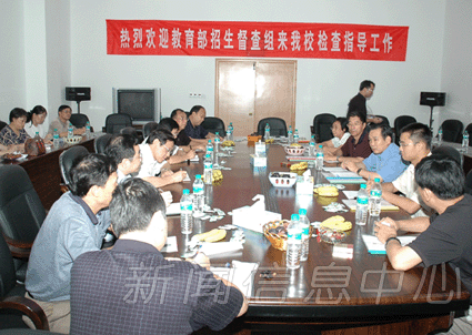 校党委副书记、常务副校长、校招生领导小组组长眭依凡教授代表学校向教育部招生督查组汇报了我校2004年招生录取情况,指出我校文史类、理工类生源充足,质量较高,录取的新生都是第一志愿考生,第一志愿上重点线人数为江西省高校之最。校纪委副书记、监审处处长聂松青教授就招生录取监督工作做了补充汇报。