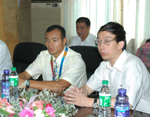 在四楼会议室,学校领导与杨文军畅谈夺冠感受。当校党委书记、校长游海告诉大家,学校将在新校区为杨文军勇夺金牌而专门建立标志性物体,以激励全校师生来学习他这种奋勇拼搏的精神时,整个会议室掌声雷动。杨文军也高兴地说:"非常感谢校长、院长及广大师生对我的莫大鼓励和支持,能成为江西师大的一员,我感到非常光荣。"