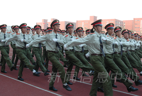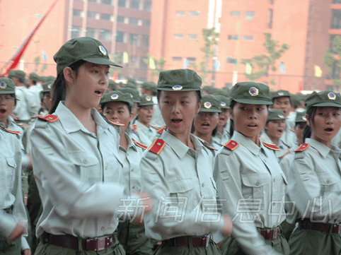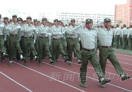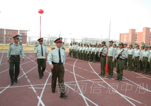 来自全校的6000多名新生进行了阅兵式、分列式表演。武装部部长蒋文可作了军训总结,这次军训分别从9月17日和21日开始,到9月29日结束,共有6300多名2004级学生参加了军事训练,圆满地完成了军训任务。