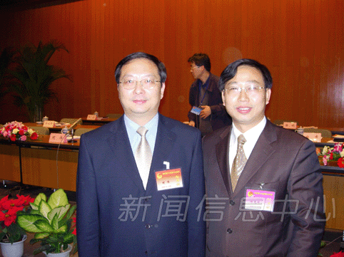 团中央书记处书记胡伟(左)与我校团委书记刘光华(右)合影 |