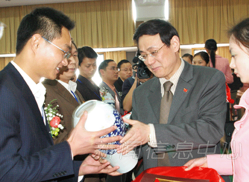 眭副书记代表学校党委讲话。他高度肯定了学校共青团取得的工作成绩,并特别指出,学校团委去年获得“全国五四红旗团委标兵”这一荣誉,为学校赢得了极高的社会评价。眭副书记还就如何进一步做好学校共青团工作提出三点意见,即站在巩固党在青年群众中的执政基础的高度,增强凝聚青年、影响青年的工作能力;按照进一步加强和改进大学生思想政治工作的要求,不断提高教育青年、服务青年的工作水平;抓住开展保持共产党员先进性教育活动的有利时机,加强和改进共青团自身建设。