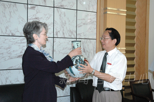 傅修延副校长向客人介绍了我校的历史沿革和近年来发展所取得的成绩。他指出,我校非常重视国际交流与合作,先后与包括美国在内的多个国家和港、台地区的高校建立了友好合作关系,并互派学者进行学术交流。学校还先后招收日、澳、韩、美等国留学生及港台学生来校交流。他表示相信,此次西彻斯特大学的来访,一定能够促进双方专家、学者的学术交流和两校间的友好合作,对提升我校的科研水平以及在国际学术界的影响力都有极为重要的意义。
