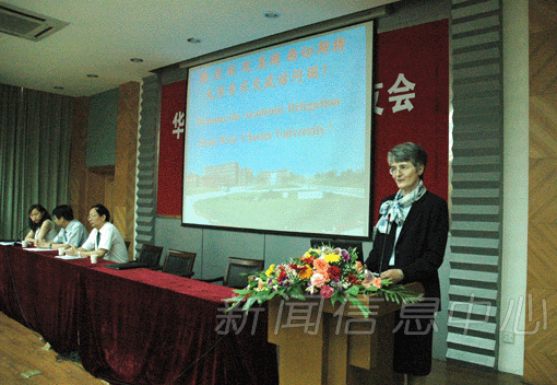 美国西彻斯特大学副校长琳达女士代表访问团对我校的热情接待表示感谢,向我校全体师生员工致以诚挚的问候。她表示,很高兴能够来我校参加国际学术交流活动,这样的合作必将对两校学者产生极大的影响,同时也推进世界范围内的学术基金交流。她希望,两校能够进一步扩展国际交往,推动诸如教学技术、文学和社会科学等多项合作研究计划的开展。