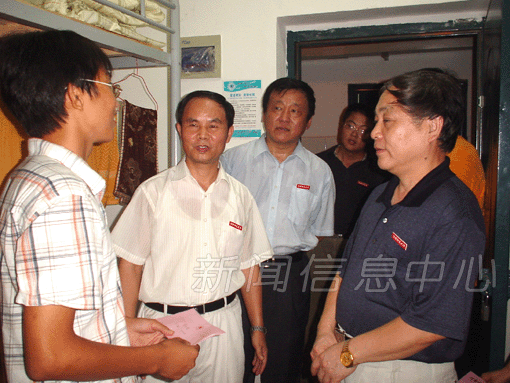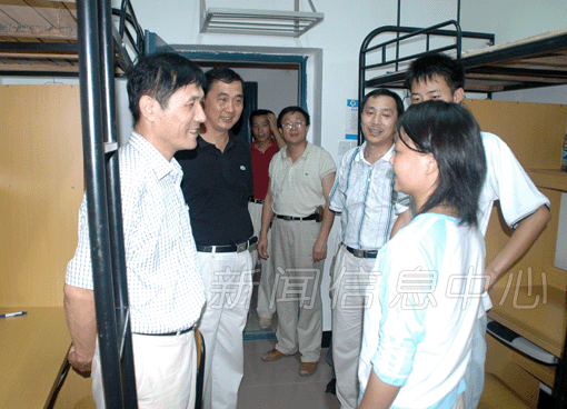 9月16日晚,我校领导游海、祝黄河、何小平、曹达忠、欧阳忠详、张平、熊大冶等,在学校有关部门负责人陪同下,来到瑶湖校区学生宿舍,亲切看望2005级新生,并向特困学生送上一份关怀。