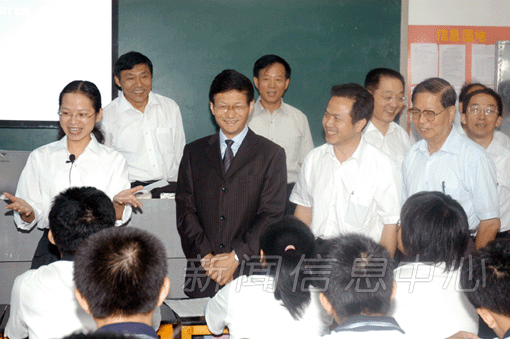 秋风送爽,阳光明媚。9月24日上午,省委书记孟建柱在省政协副主席刘运来,省教育工委副书记、省教育厅副厅长李小南,省教育厅副厅长王占铭等陪同下,来到全省优秀重点中学--江西师大附中视察。孟建柱书记与学校领导和部分教师代表座谈,一起探讨江西基础教育发展的思路和对策。孟建柱书记强调,师大和师大附中教育教学的长足发展对江西基础教育事业有着积极的贡献,学校一定要进一步加强素质教育,培养德才兼备的创新型人才。