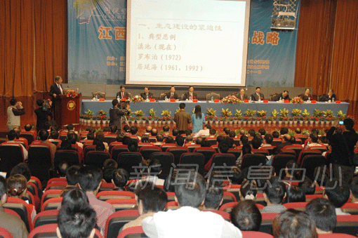 10月21日上午,由民进江西省委和我校共同主办,省经贸委、省环保局、省山江湖委办、省生态学会协办的"江西实施生态经济发展战略"高层论坛在瑶湖校区先�X楼演奏厅举行。