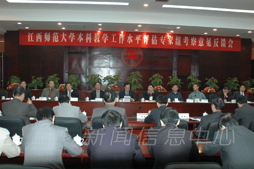 隆重而简洁的欢迎仪式之后,接着举行了江西师范大学本科教学工作汇报会。游海校长代表学校从学校基本情况、主要成绩、评建工作、整改方向等四个方面,向教育部专家组详细汇报了我校本科教学工作的情况。游校长从学校的发展概况、办学思想、目标定位、教学改革、人才培养、品牌特色等方面对学校本科教学工作的开展情况和所取得的成绩、办学特色与今后的发展方向等作了全面而详尽的阐述。