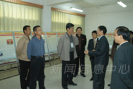 在政法学院,专家小组参观了模拟法庭,饶有兴趣地观看了学生的上课情景;参观了"江西省红色资源开发与教育研究中心",观看了江西红色革命图片展,考察了"社会工作实验室",并观看了实验室的模拟教学录像;