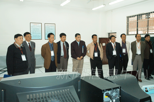 在校园网管理中心,专家组听取了负责人的介绍,并参观了核心网络设备和各种应用服务器。9点20分左右,专家们步履从容地走上了图文信息大楼三楼阅览室,听取图书馆馆长对图书馆的全面介绍;