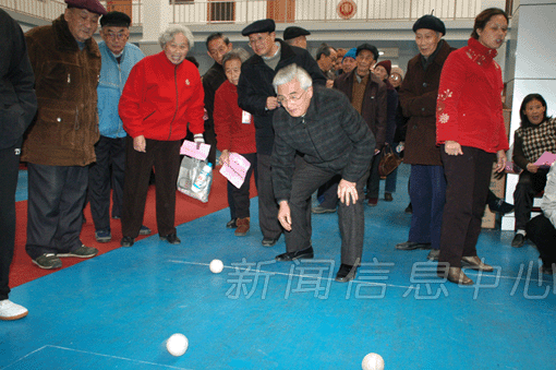 随后,老同志们兴致勃勃地加入到游艺活动中。本次游艺活动共设"回马枪"、"桌球滚准"、"天时地利人和"、"飞标"和"剪刀石头布"五个大项目,每个项目又分为65岁以上和65岁以下两组。在离退休党总支、离退休部门工会委员和离退休办公室全体工作人员紧张有序的组织下,老同志们既活动筋骨,又怡情缱兴,整个活动室内欢声笑语,充满了喜庆祥和的气氛。
