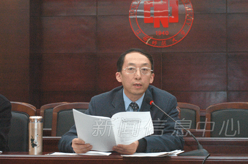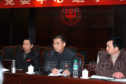 12月29日下午,校党委中心组在知行楼二楼报告厅进行集中学习,传达、学习全国高校党建工作会议精神,征求关于学校"十一五"发展规划(草案)的意见。校领导游海、祝黄河、蒋凤池、何小平、曹达忠、余欢,校长助理欧阳忠详、张平、熊大冶参加了本次学习。各学院、各职能部门主要负责人一同参加。大会由校党委副书记祝黄河主持。
