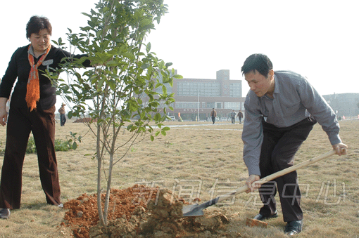 在一片欢声笑语中,校领导们兴致勃勃地甩开膀子,挥锄舞铲,栽种树苗,每一个动作都那么流畅,每一个神情都非常专注,这动作就象在教室里手把手地辅导学生,释疑解惑;这神情就象灌注在同学身上的成才期望,殷殷情深。校领导们在体会着劳动的快乐的同时,也为绿色校园、生态校园和人文校园增添了一片新绿。