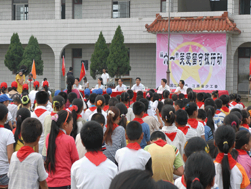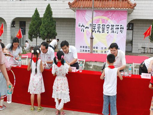 5月31日下午, "六一"国际儿童节来临之际,我校大学生志愿者、师大附小学生代表来到南昌县塘南镇渡口小学,开展关爱农村留守儿童活动。校纪委书记何小平,团省委副书记肖洪波,校团委负责人等出席活动。