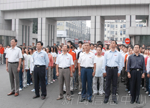 10 月 1 日早晨,我校在青山湖校区举行升国旗仪式,庆祝伟大祖国 58 周年华诞。校领导眭依凡、祝黄河、何小平、欧阳忠详,校长助理张平、汤赛南,有关职能部门负责人和几百名学生参加了升旗仪式。