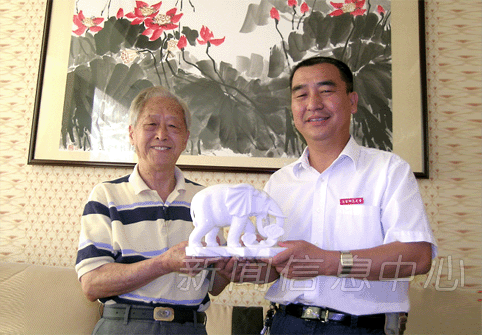 参观后,余明章先生向学校赠送了象征吉祥如意的汉白玉雕塑艺术品。