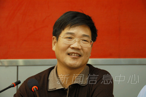 我校化学化工学院院长蔡明中教授在讲话中预祝选手们赛出风格、赛出水平,取得优异的成绩。(文/校报记者 周小秋 图/黄志刚)