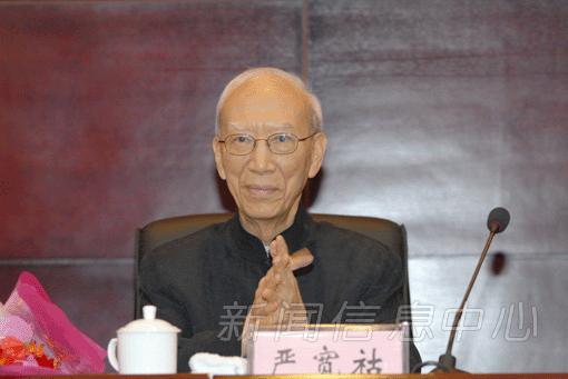 严宽祜先生年过八旬,面容清穆,眼中闪着智慧的灵光。他的发言简短而超脱,他说:"关怀教育工作,是我们佛教的中心思想。感谢获奖同学接受我们的一点点鼓励,而满足我们的心愿。"