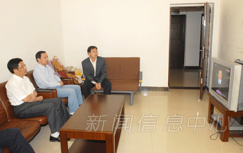 在先�X楼和其他行政楼,校纪委、组织部、统战部、团委、学生处、国际合作与交流处等机关处室的工作人员都汇集在电视机前。在文旅、理电等教学单位,院党委组织了行政人员、教师收看中央电视台的直播节目。
