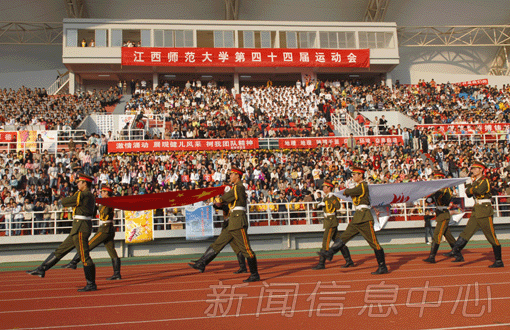 8时许,随着校党委副书记、校长眭依凡宣布"江西师大第四十四届田径运动会开幕式正式开始",在激昂的运动员进行曲中,裁判员、运动员依次进场。