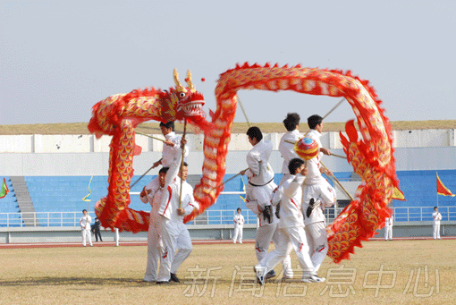 开幕式上还进行了第八套广播体操、健美操以及舞龙等精彩表演,博得场下阵阵热烈掌声。