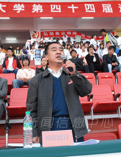 在热烈的掌声中,欧阳忠详副校长最后宣布:"江西师范大学第44届运动会胜利闭幕!"