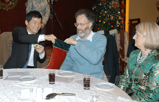 12月21日晚,我校在瑶湖校区国际交流中心举行2007年圣诞招待会,盛情招待全体在校外籍教师、外国留学生。