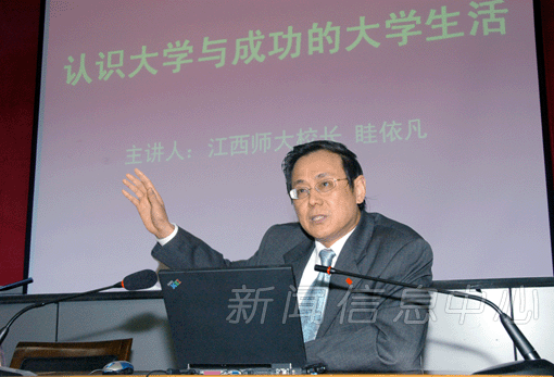 12月22日晚,受团省委邀请,校长眭依凡在青山湖校区图书馆报告厅为"江西省大学生骨干培训学校"和我校"青蓝之星"第三期学生骨干班的200余名学员作了题为《大学的理想主义与大学生的成长》的报告。报告会由省学联驻会主席、我校美术学院学生何美才同学主持。