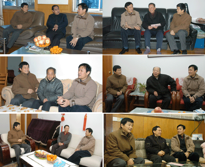 1月9日上午,校领导眭依凡、祝黄河、何小平、曹达忠、徐耀耀、赵明,校长助理张平、汤赛南带领校办、组织部、离退休工作处、统战部、人事处等部门负责人,集中看望了离退休老领导、老同志,统战人士和获得国家及省级殊荣的知名专家、学者,给他们送去全体教职员工的新年祝福,并与他们进行了亲切交谈。