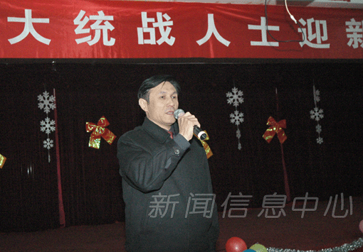 1月11日下午,青山湖校区工会多功能厅张灯结彩,喜气洋洋。各民主党派成员、侨联"三胞"成员、知联会成员与各基层学院统战委员及统战部全体同志近200余人济济一堂,共迎新春,畅叙友情,辞旧迎新,喜迎奥运。校党委副书记祝黄河出席并致辞,省委统战部六处处长杨建平率领全处同志参加了联欢会。