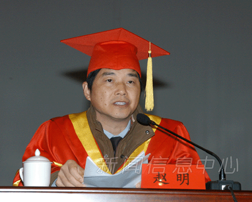1月16日下午,我校2007届硕士研究生学位授予大会在先�X楼实验剧场举行。校纪委书记何小平,副校长徐耀耀、赵明,研究生院负责人,三名全国首届教育硕士优秀指导教师、部分毕业研究生导师代表以及2007届教育硕士、高校教师、同等学力硕士及统招研究生共300余人参加了学位授予大会。大会由副校长、校学位评定委员会副主席赵明主持。
