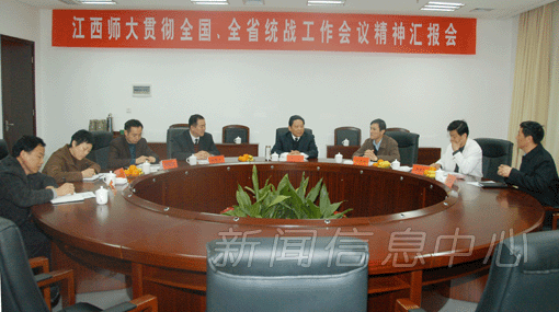 祝黄河副书记首先代表学校党委对严平副部长一行的到来表示热烈的欢迎,感谢省委统战部对我校统战工作长期以来的帮助和支持。他说,我校在省委领导与省委统战部指导下,紧密结合学校改革发展的实际,努力做到落实普遍要求与结合具体实际相统一,全面推进与重点突破相统一。祝黄河副书记从以组织建设为关键,加强民主党派、无党派人士工作;以制度建设为保障,提高统战工作能力和水平;以党外干部建设为重点,发挥党外人士的作用;以"凝聚力工程"活动为抓手,增添统战工作新活力等四个方面详细汇报了我校贯彻落实全国和全省统战工作会议精神的具体举措。祝副书记还谈了我校贯彻落实过程中的体会及存在的不足。