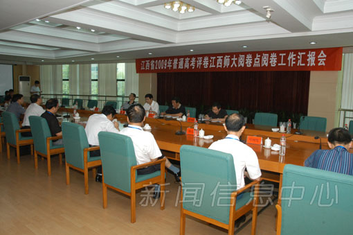 省高招办主任肖辉从加强领导,精心组织;严把遴选评卷教师;认真做好试评和培训工作;实行“三评制”,确保评卷质量等四个方面,汇报了今年高考评卷工作的有关情况。