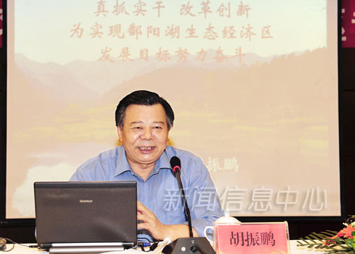 报告会上,胡振鹏主要讲述了鄱阳湖生态经济区发展定位和发展目标,绿色技术创新,发展绿色经济、实现生态和经济发展的“双赢”, 真抓实干、实现鄱阳湖生态经济区建设目标四个方面的内容。