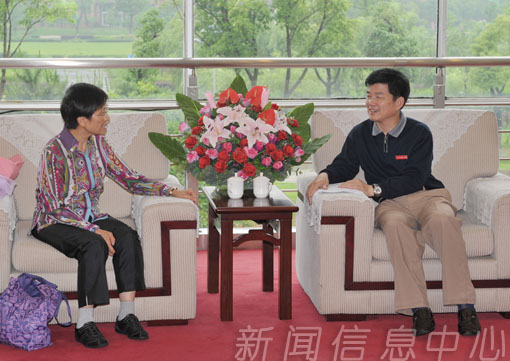 颁奖开始前,赵明及有关职能部门负责人在知行楼第一接待室会见了严崔常敏女士一行。