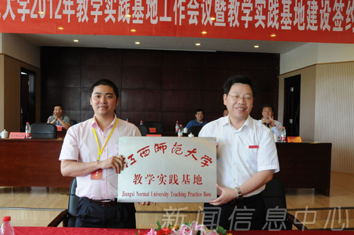 5月20日,校园开放日当天上午,我校在白鹿会馆二楼报告厅举行2012年教学实践基地工作会议暨教学实践基地建设签约仪式。校党委书记陈绵水、副校长张艳国出席,中国联通公司江西分公司副总经理杨仲荣、江西联创电子有限公司副总裁王志勇等来自省内外近50个教学实践基地的代表受邀参会,党(校)办、教务处、人事处、教师教育处、学生处、团委、资产管理处等职能部门负责人及各学院教学副院长参加会议。会议由张艳国主持。