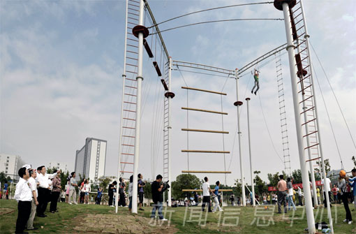 据悉,我校心理素质拓展基地共包含高空组合(高空断桥、空中相依、空中抓杠、巨人梯、软梯、缅甸桥)、攀岩、盲目障碍、激流勇进、携手并进、礼让通行、移花接木、信任背摔、荡桥、模拟电网、匍匐前进、胜利墙、孤岛求生、鼓舞飞扬、有轨电车、穿越曲径16个项目。这些项目旨在通过团队合作的形式来帮助大学生培养团结协作精神和人际沟通技能,并进行个人意志力的训练,提升学生的抗压能力和耐挫力,克服自身的焦虑和恐惧心理,突破学生的自我思维的设限,来实现个人心理综合素质的提高。(文/钟雪艳 图/董江洪)