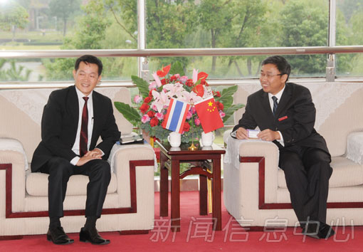 黄加文代表学校对代表团的来访表示欢迎,并简要介绍了我校的办学规模、师资力量等概况。他指出,江西师范大学近年发展较快,特别是在国际合作与交流方面,目前我校在美国和马达加斯加承办了两所孔子学院。自2003年与泰国宋卡王子大学建立合作关系以来,两校交往日益密切,希望两校间今后在教学、科研、师生互访等方面进一步加强合作。