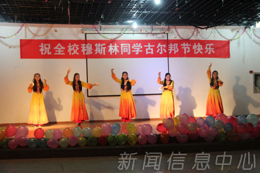 当晚,学校在大学生活动中心三楼举行了古尔邦节联欢会。学生处相关负责人及各学院党委副书记、辅导员参加了此次联欢会。联欢会中,来自不同地区的穆斯林同学载歌载舞,他们优美的舞姿、嘹亮的歌喉,搏得在场观众的阵阵掌声。为了表达对穆斯林学子的节日祝贺,汉族同学也带来了精心编排的节目,整个晚会充满了浓郁的民族特色,处处洋溢着喜庆欢乐的节日气氛。